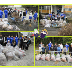 「地域と一緒に環境をきれいにしよう!!」 万倉小3~6年生と楠中の生徒、そして地域のみなさんが、「We Love KUS…