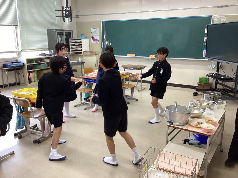 新しいメンバー、新しい担任の先生に代わっても、スムーズに配膳を終えて、おいしくいただきました。
