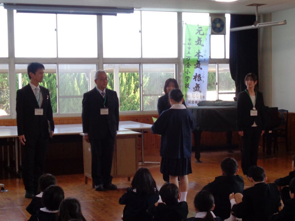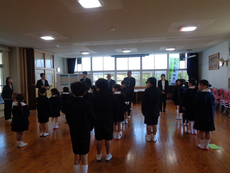 最初は着任式、新しく着任した教職員に6年生から歓迎の言葉がありました。