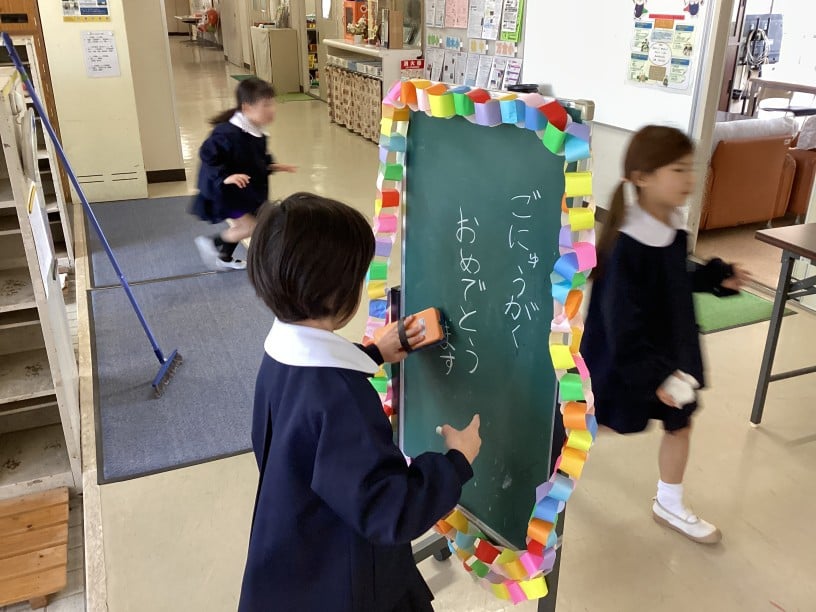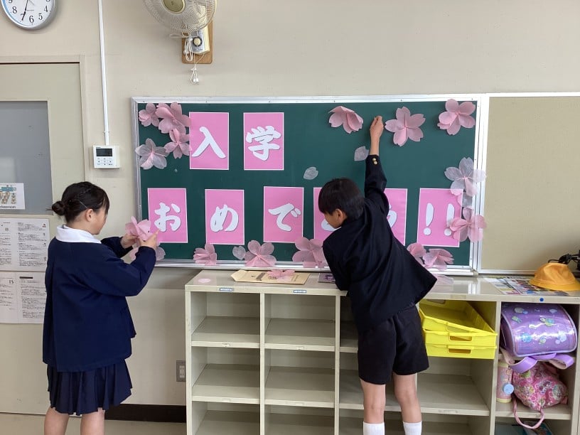 続いて学級開き、その後翌日の入学式に向けて全校で準備を行いました。