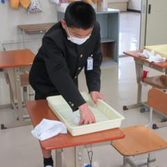 明日卒業する6年生は、引き出しやロッカー、靴箱をきれいに掃除していました。まさに、立つ鳥跡を濁さずです。そして、教職員一…