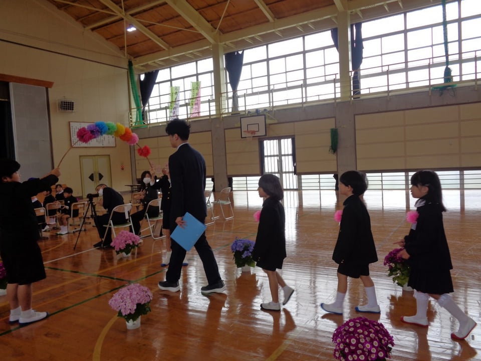 新入児童と保護者、来賓をお迎えして全学年参加の入学式を挙行しました。