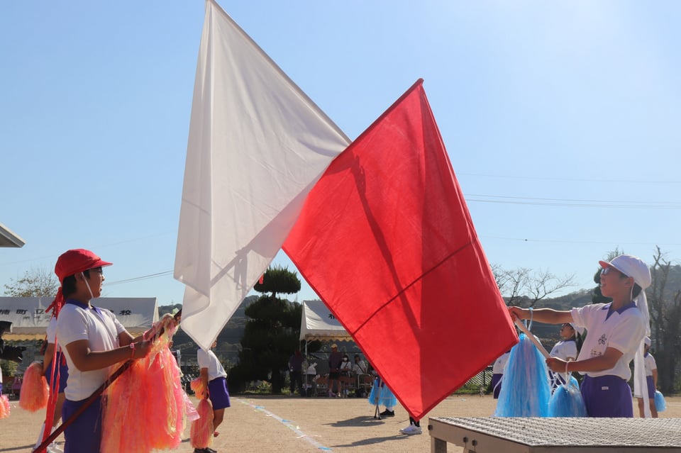 雲一つない澄み切った秋空のもと、令和7年度万倉小学校・万倉地区合同大運動会が開催されました。