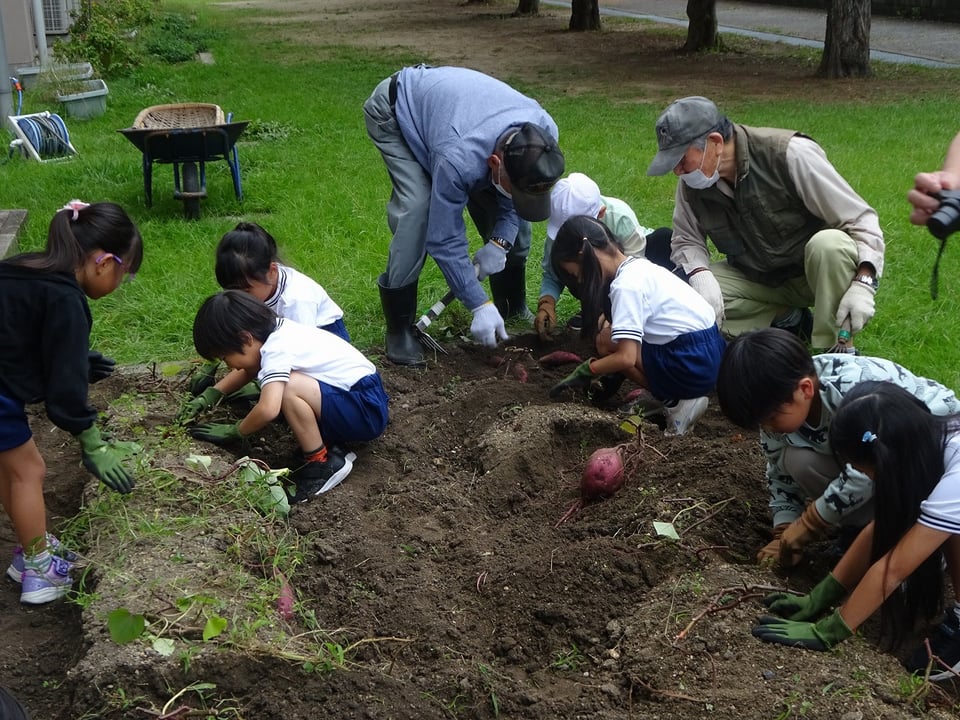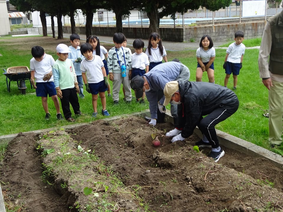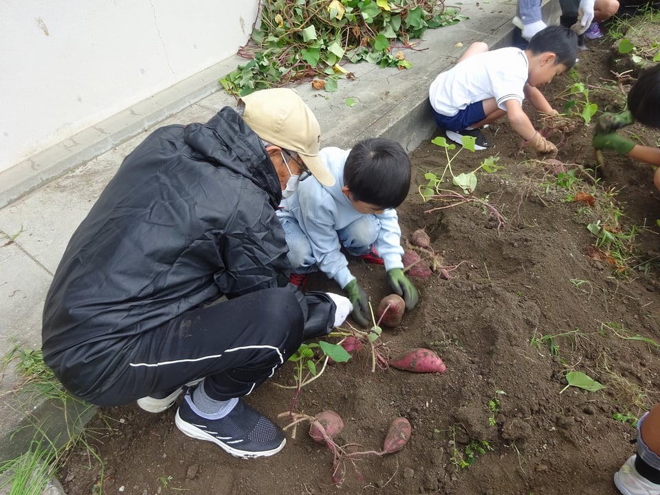 子どもたちの目を輝かせてお芋を掘る姿は、とても楽しそうで、地域の方々との温かい交流のひとときとなりました。