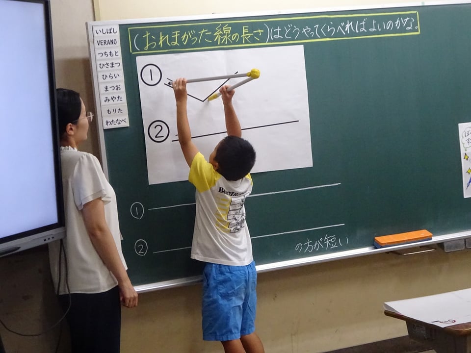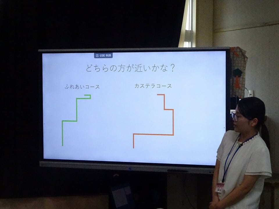 宇部市教育委員会の指導主事 蔵本裕二先生を講師に招いて、教職員で授業の研修をしました。この日は別の研修会も一緒に行われたため、他校からも先生方が参観に来られていました。3年生は算数の「円と球」の授業で、消防署の見学に行く道のりをふれあいコースとカステラコースで比べることを通してコンパスの新たな機能を学ぶ授業でした。子どもたちが、真剣に学ぶ姿が素晴らしかったです。