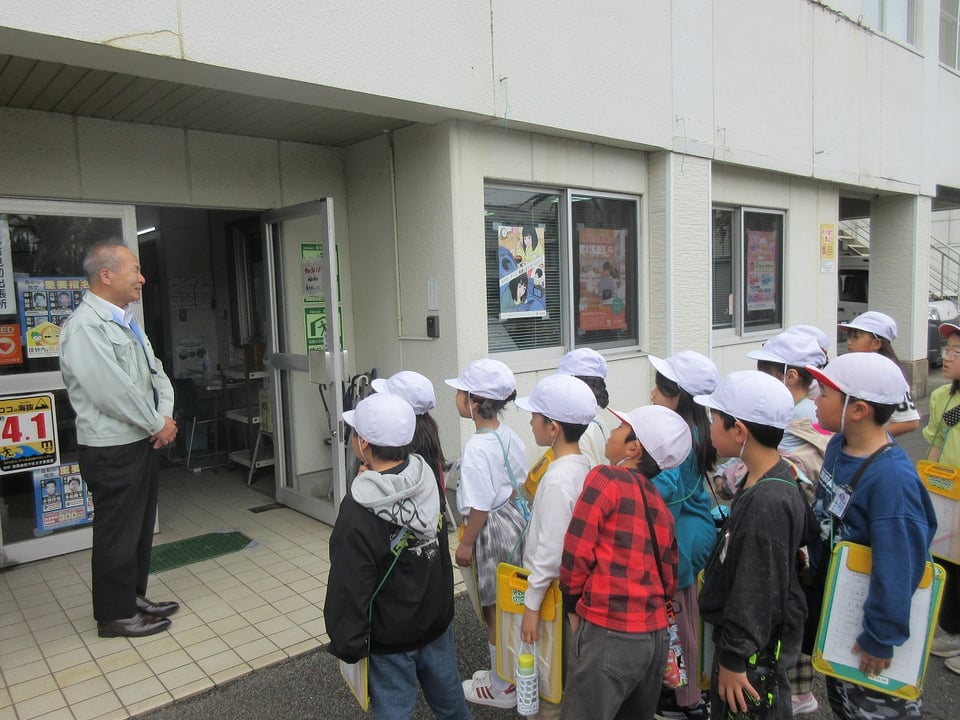 爽やかな風が吹き抜ける中、3年生が社会科の学習で「町たんけん」に出かけました。 自分たちが住んでいる見初の町には、どんな場所があり、どんな方々が働いているのか。子どもたちは、探検バッグを手に元気いっぱい出発しました。