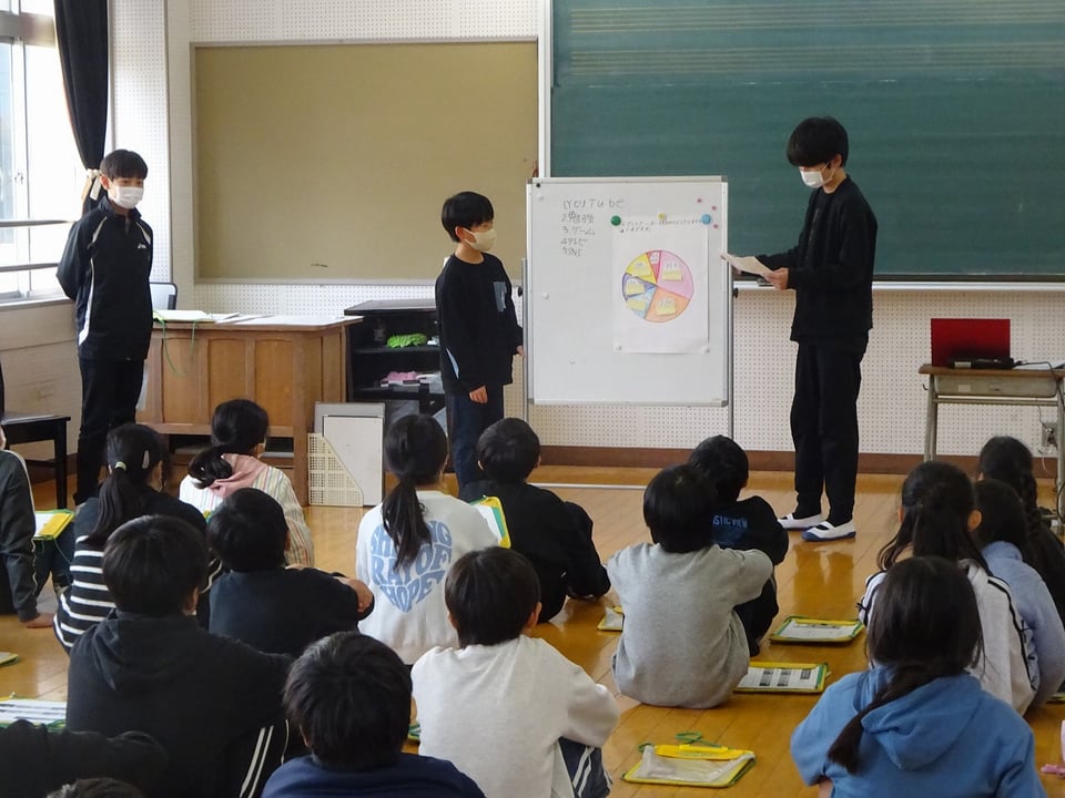 学校保健委員会で、保健委員会の児童の発表も交えたネットの特性や適切なコミュニケーション方法、情報のリスクなどの内容を養護教諭から学びました。SNSツールで場面ごとに適切な活用方法等について身につけられるように、学習しました。便利なツールも一歩間違えば、相手を傷つけたり、生活習慣を崩したりしてしまいます。今日学習したことを実際の生活に生かしてほしいと願っています。同じ時間帯では保護者の方には情報モラルについての出前授業に参加していただきした。参加していただいた保護者の皆様、ありがとうございました。