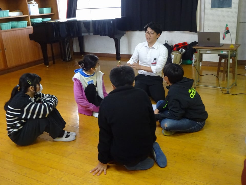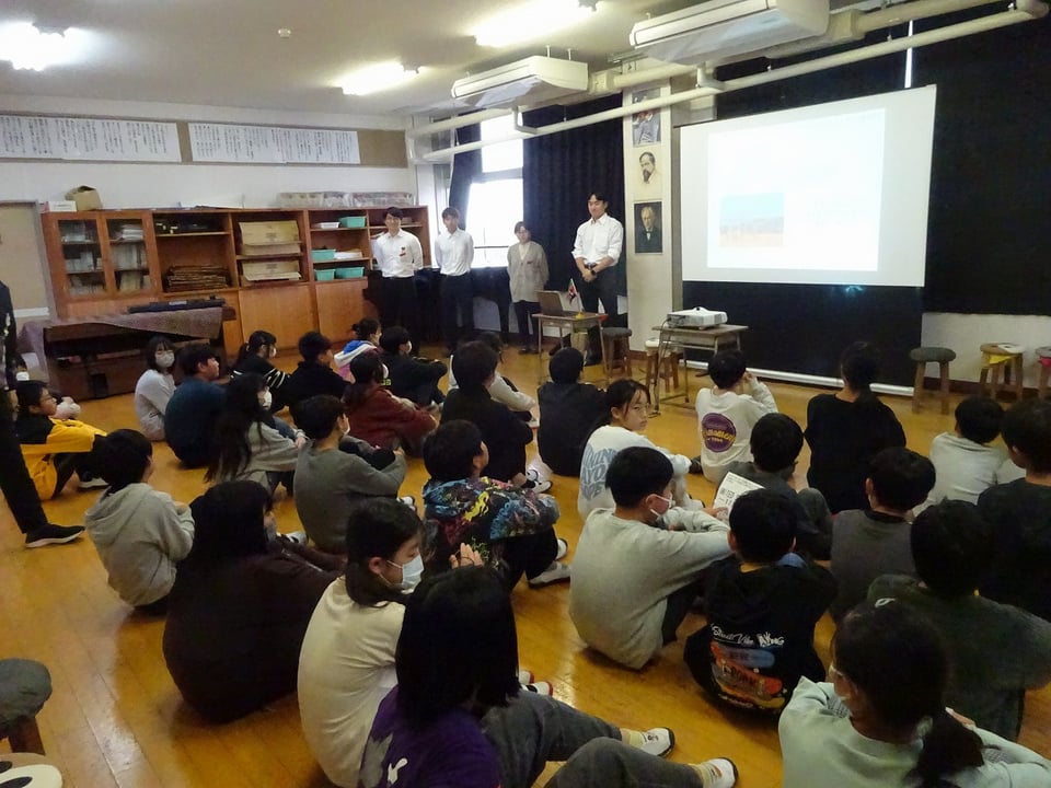 ユニクロと連携した服のチカラプロジェクトの学びの一環として、山口大学の医学生の皆さんからアフリカについてのお話を聞きました。自分たちが集めた子供服が送られる地域と似ているところもある生活のお話でした。医学部の皆さんなので、医療の勉強に行かれたのですが、小学生にも分かりやすいようにクイズを交えながら生活について伝えていただき、自分たちの暮らしと全く違う暮らしに子どもたちは興味津々で聞いていました。途中からグループワークになり、それぞれのグループで、自分たちが将来アフリカに、どんなことができるか考えました。自分の得意な分野を生かして考えている子が多く、びっくりしました。学校が世界と出会える場所になっていることを嬉しく思いました。医学部の皆さん、アフリカの生活や医学部について貴重なお話をしていただいて、ありがとうございました。