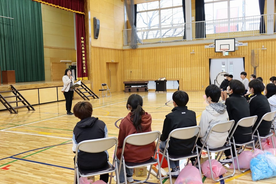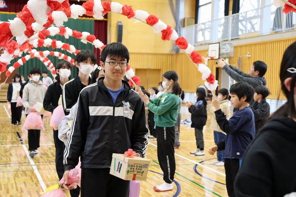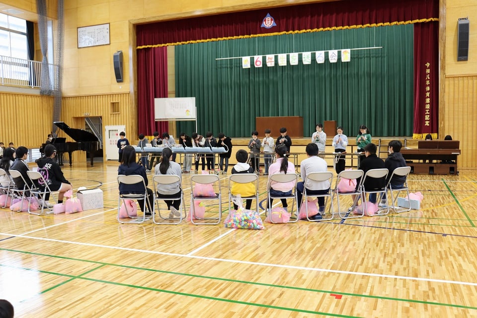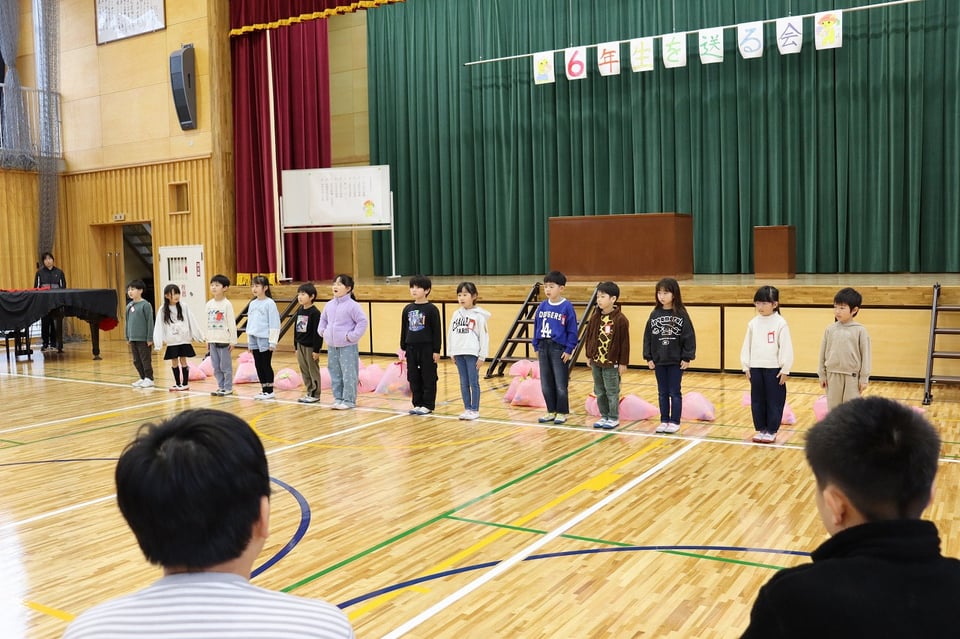 各学年からの心のこもった出し物があり、縦割り班から6年生一人一人にプレゼントされたメッセージボックスもあり、体育館全体が温かい雰囲気に包まれた素敵な会になりました。6年生の卒業まで、あと10日になりました。