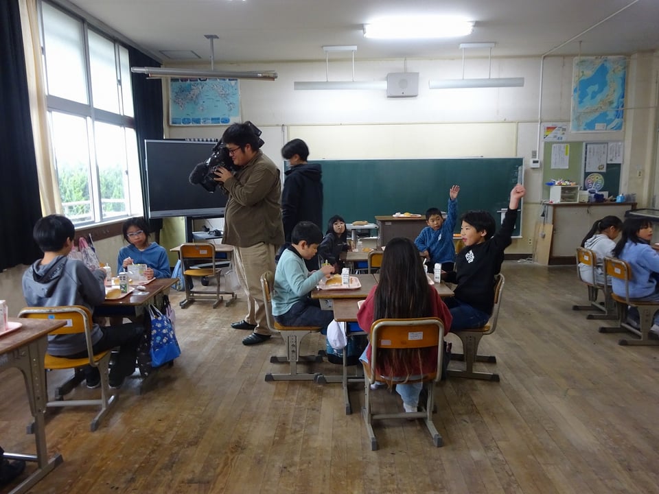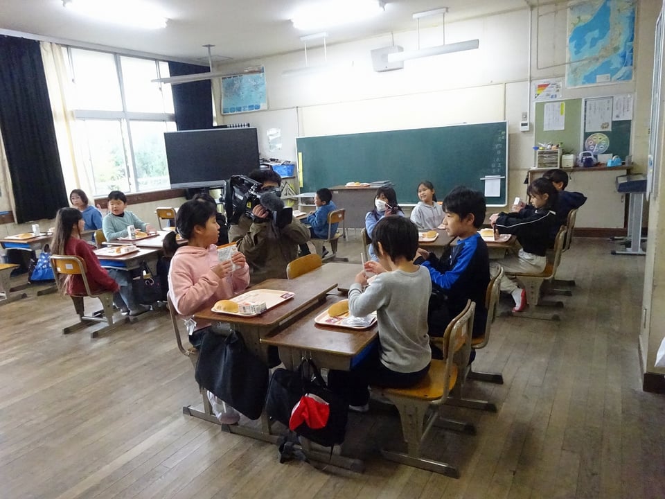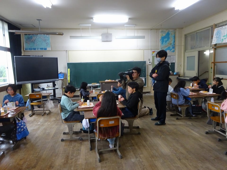 子どもたちは、普段とは違うレトルトパックの給食で、テレビの取材も入り、少し驚いた様子でしたが、「おいしい!」と笑顔で食べていました。