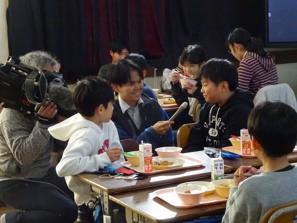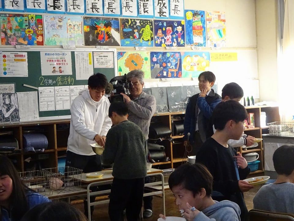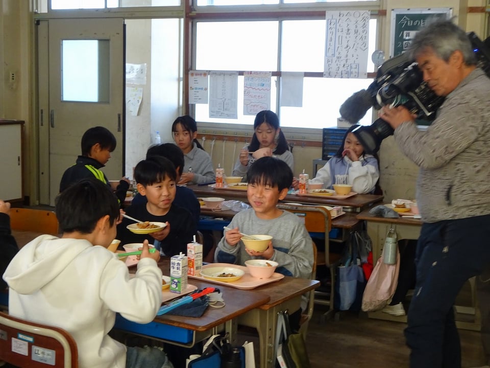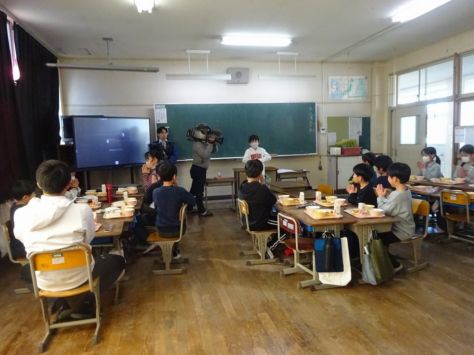 本日も取材が入り、取材が入った学年は緊張しながらも嬉しそうに給食を食べていました。
