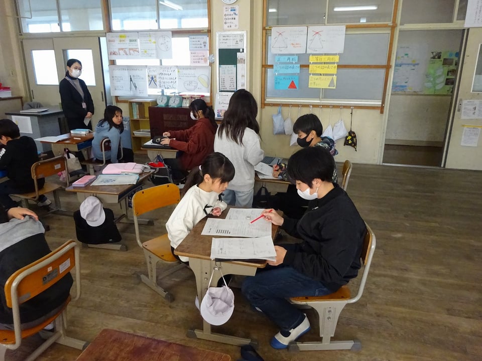 2学期から継続してきた縦割り班学習「みぞにゃんこタイム」が、本日ついに最終日を迎えました。算数のプリント学習を中心に、異学年で支え合ってきたこの時間も、今年度は今日で最後です。各教室では、いつものように5・6年生が下級生の机の横に寄り添い、優しく丸付けをしたり、ヒントを出したりする姿が見られました。1〜4年生も、お兄さん・お姉さんに認められたくて、最後まで一生懸命に課題に取り組んでいました。