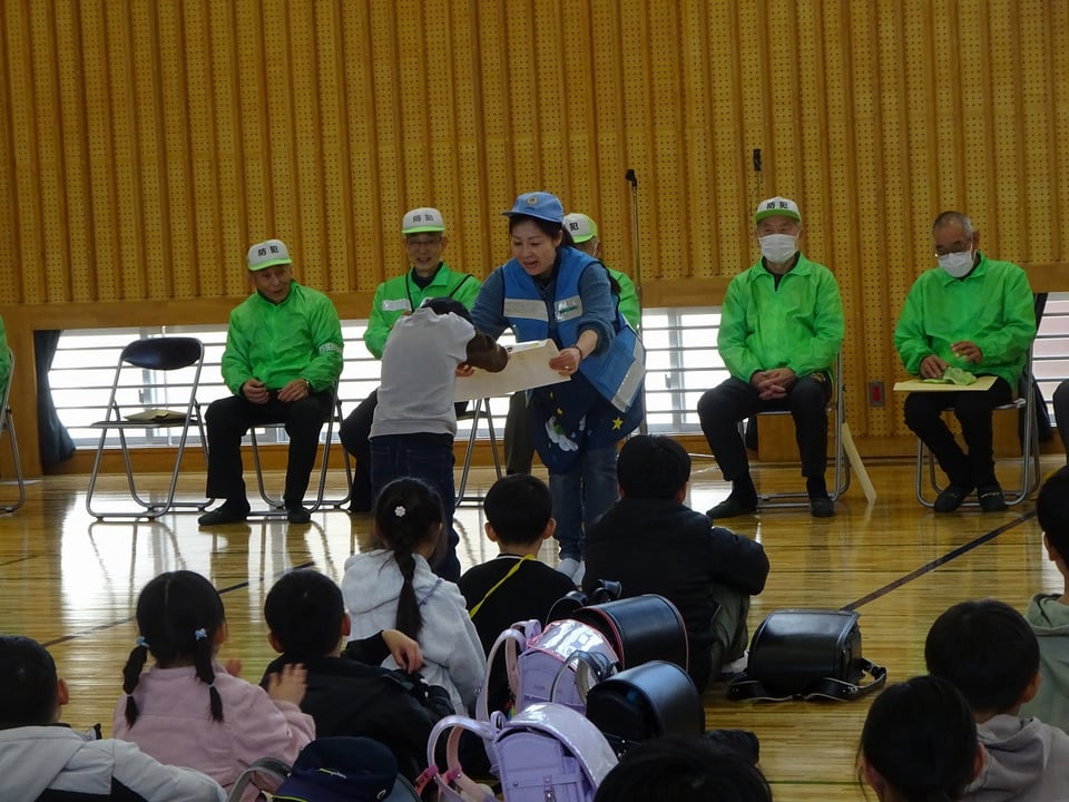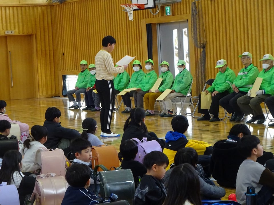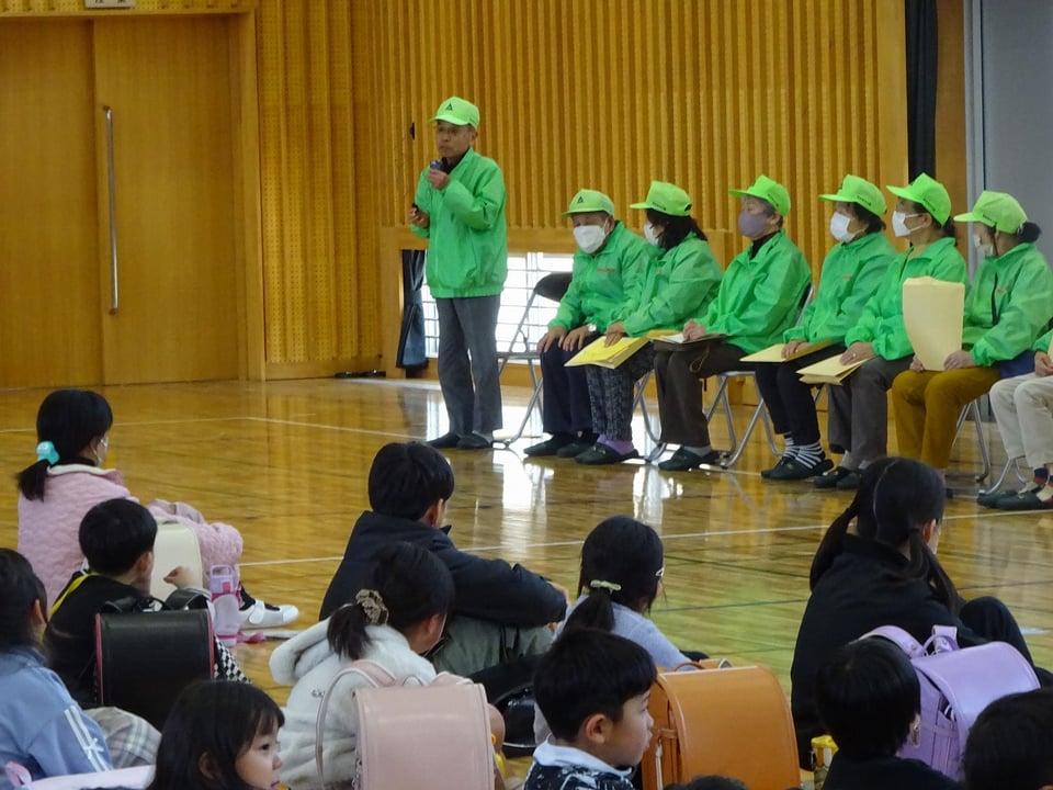 会では、6年生の代表児童が感謝の言葉を述べました。地域の方々からも、登下校時の挨拶や安全な歩き方について温かい励ましのお言葉をいただきました。見初小学校の子どもたちが事故や大きなケガもなく、笑顔で元気に登校できているのは、ベストやパーカー、帽子を身にまとった地域の皆様の支えがあるからです。これからも感謝の気持ちを忘れず、元気な挨拶でその思いを伝えていきたいと思います。