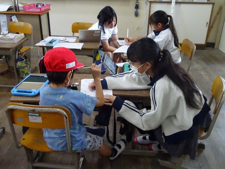 本日は県教委からみぞにゃんこタイムの参観にいらっしゃいました。5,6年生が先生として1~4年の学び直しの支援をすることで、5,6年生も「正しく教えるために事前に予習・復習をしている」「自分がわからなかったことを発見できる」「自分でなんとなくわかっていたことが、人に教えるレベルでわかるようになる」として、素晴らしい学びになっていると、感想をいただきました。