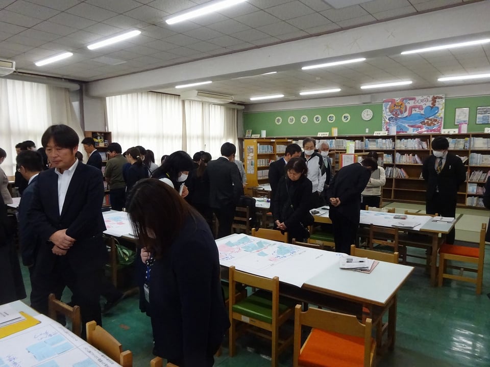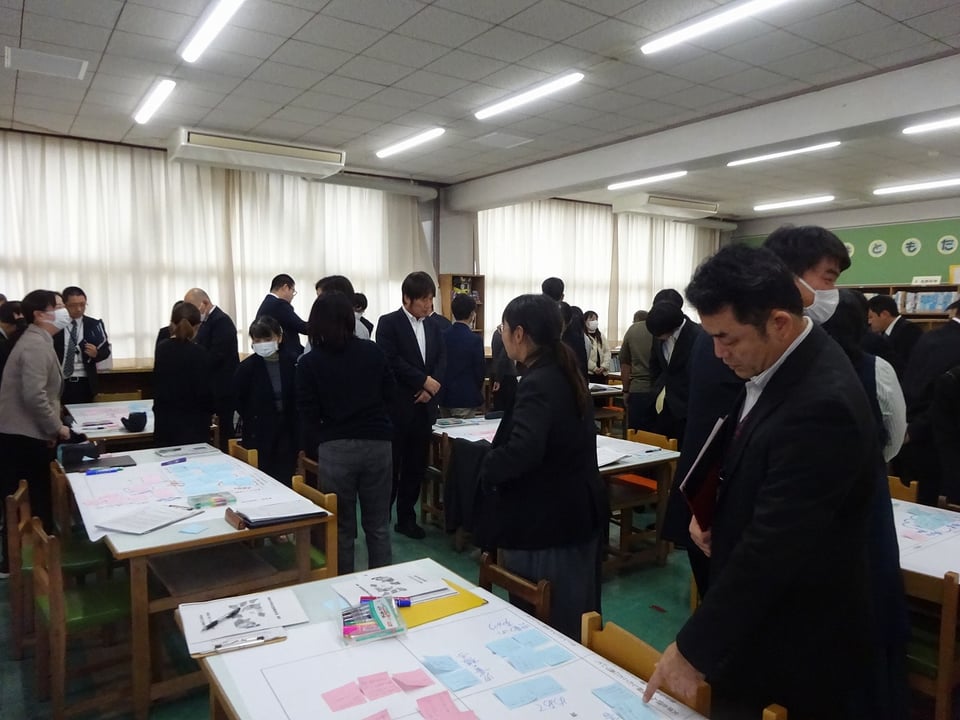 子どもたちが給食を食べて下校した後、神原中校区で授業の研究会がありました。今年度は神原小学校が授業をする学校だったので、神原中校区の教職員が神原小に集まり、5年生の国語の授業を参観しました。その後、研究協議会が開かれ、神原小、見初小、神原中の先生方が一緒になって、意見交換を行いました。中学校の先生方と授業についての話をする機会はとても貴重でした。