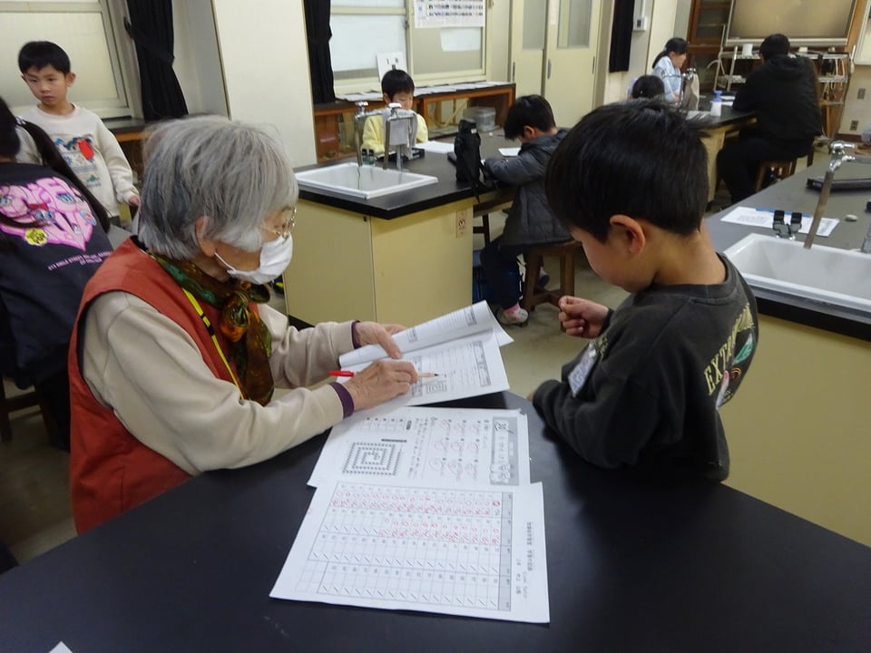 「放課後学習室」は、地域のボランティアの方々が先生となり、子どもたちの学びを支えてくださっています。学校が終わったあとの時間、そこには、自分のペースでブリントに向かう子どもたちと、それを優しく見守る地域の方々の姿があります。