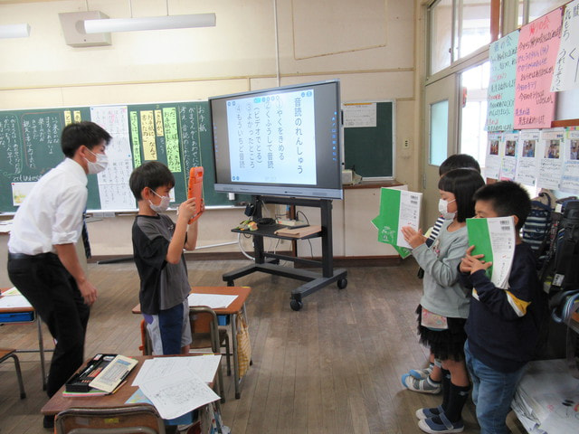 2年生の国語の研究授業がありました。子どもたちは少し緊張していましたが、登場人物の気持ちをよく考え、音読の工夫について話し合いを進めました。本日は推進リーダーの黒石小学校教頭、中島先生を指導者にお迎えし、市教委の濱田指導主事、神原小学校で2年生担任の片山先生や運営協議会梅田会長さんにも参加していただき、充実した研修会となりました。対話を重視した、表現力の育成について意見交換を行いました。