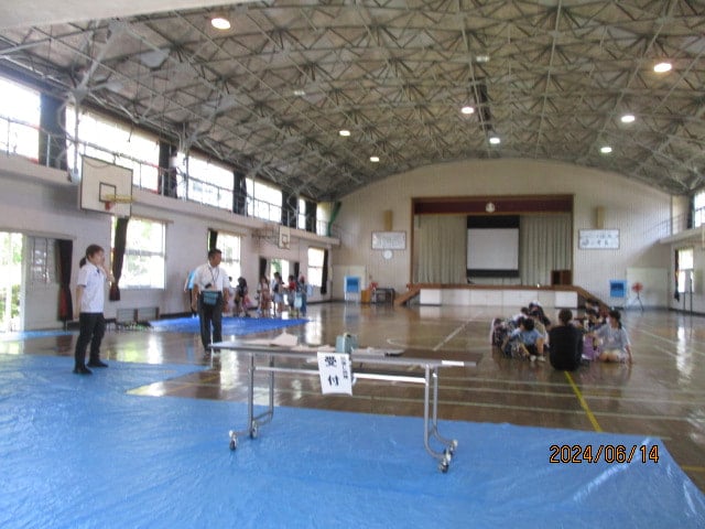 大雨の災害時を想定した引き渡し訓練がありました。中学校区で同時に行いました。子どもたちは、真剣な表情で教室から引き渡し場所である体育館へ避難しました。おうちの方が来られるのをじっと待ち、お迎えがある児童から帰っていきました。車の誘導には、地域の方も協力してくださり、一方通行での車の流れがスムーズでした。実際の場合、どうしてもすぐにお迎えの難しい場合の児童の待機方法など、考えておく必要があると思いました。