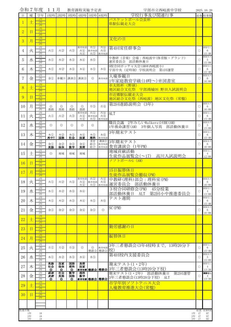 11月行事予定