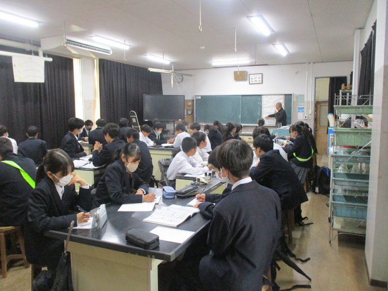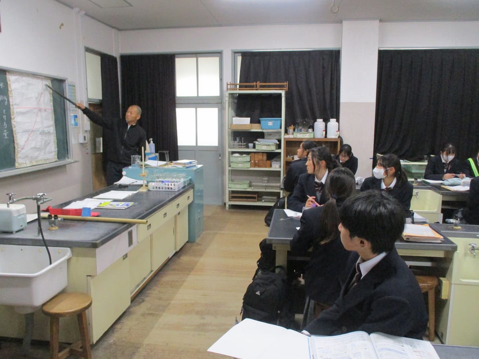 個人のニーズに応じて教室を選択し、自学自習コースの普通教室と理科のグループ学習コースの理科室に分かれて取り組みました。