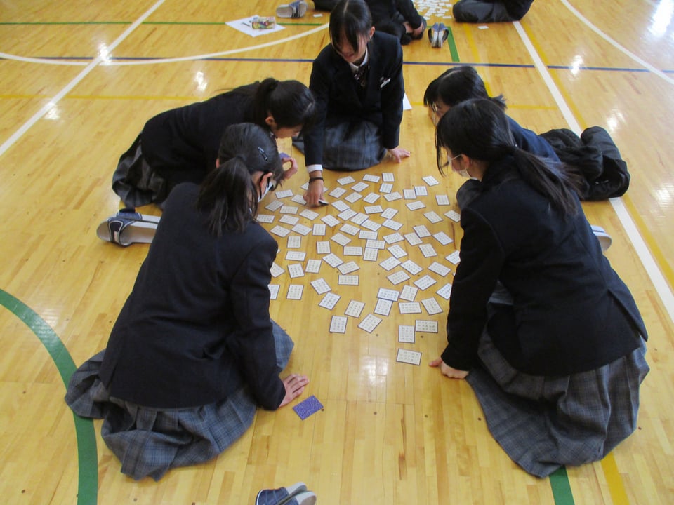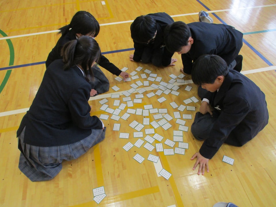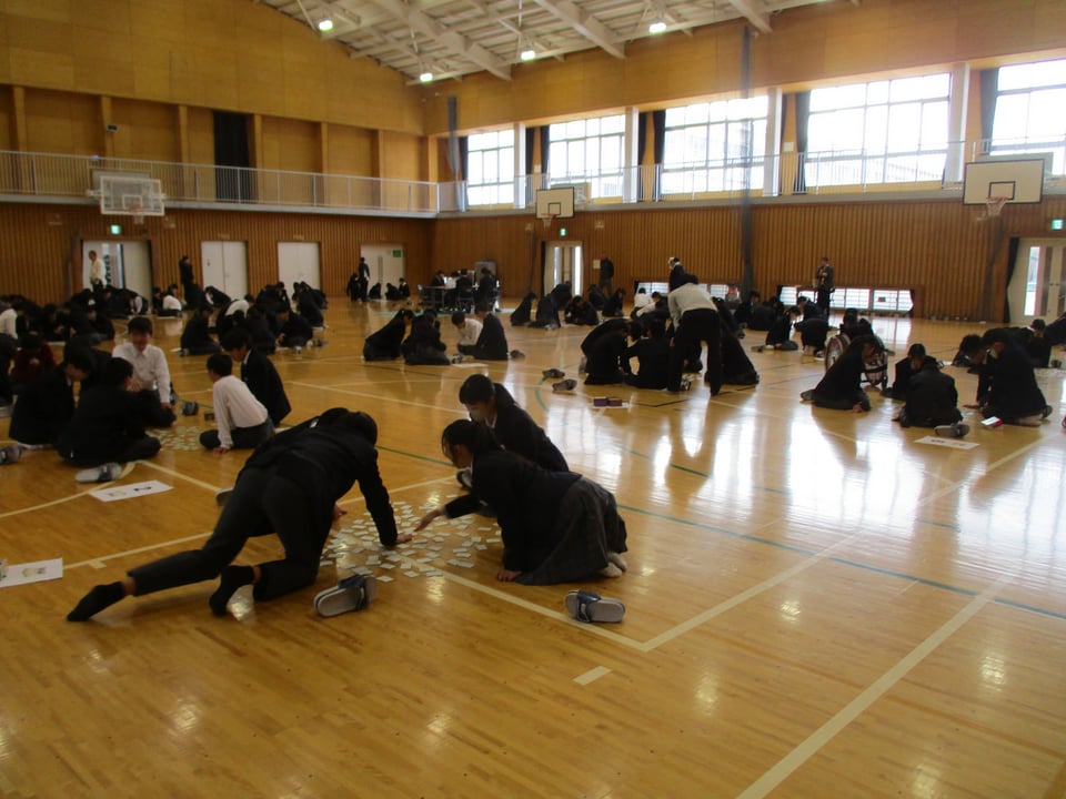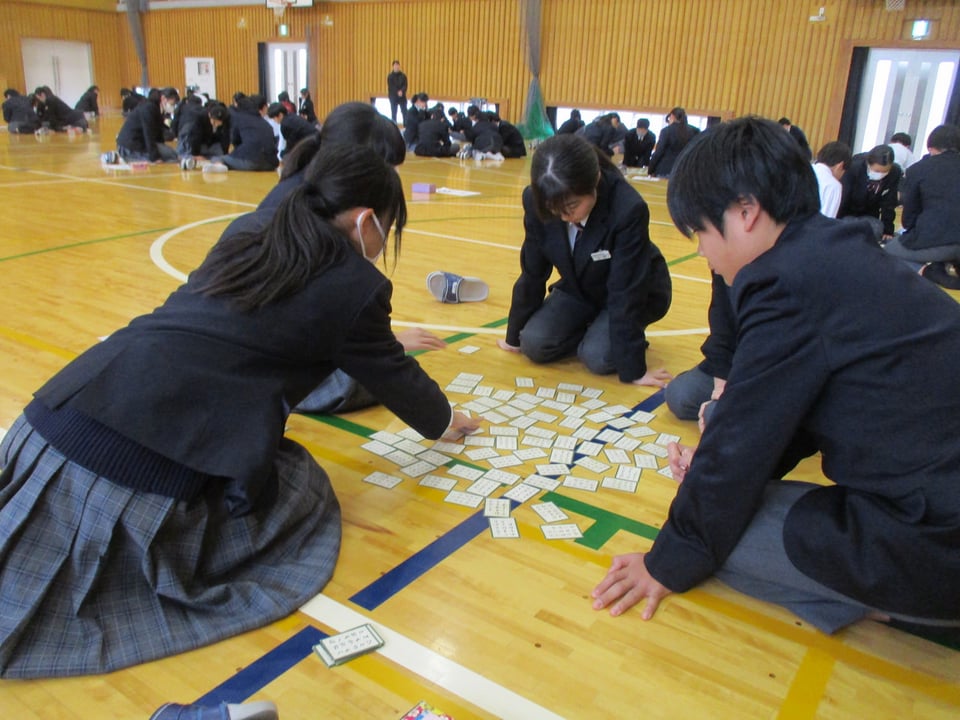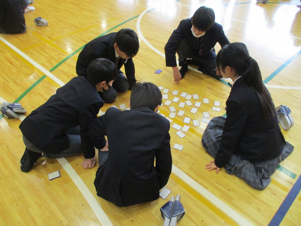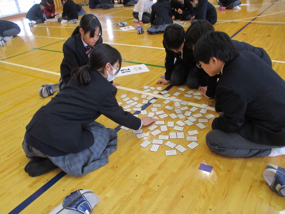 本日5時間目に、体育館で百人一首大会を行いました。