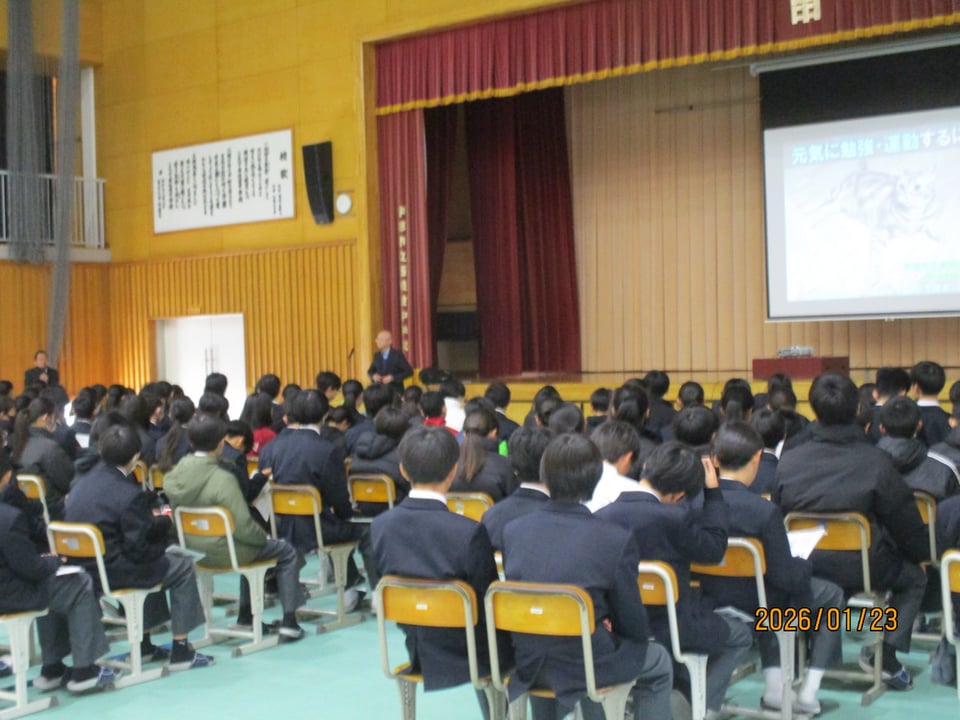 本日は、脳神経筋センターよしみず病院の先生にお越しいただき、「元気に勉強するには~生活習慣が成績を左右する~」というテーマで、1年生を対象にご講演いただきました。食事、睡眠、勉強という3つの視点から大事なことを学ぶことができました。