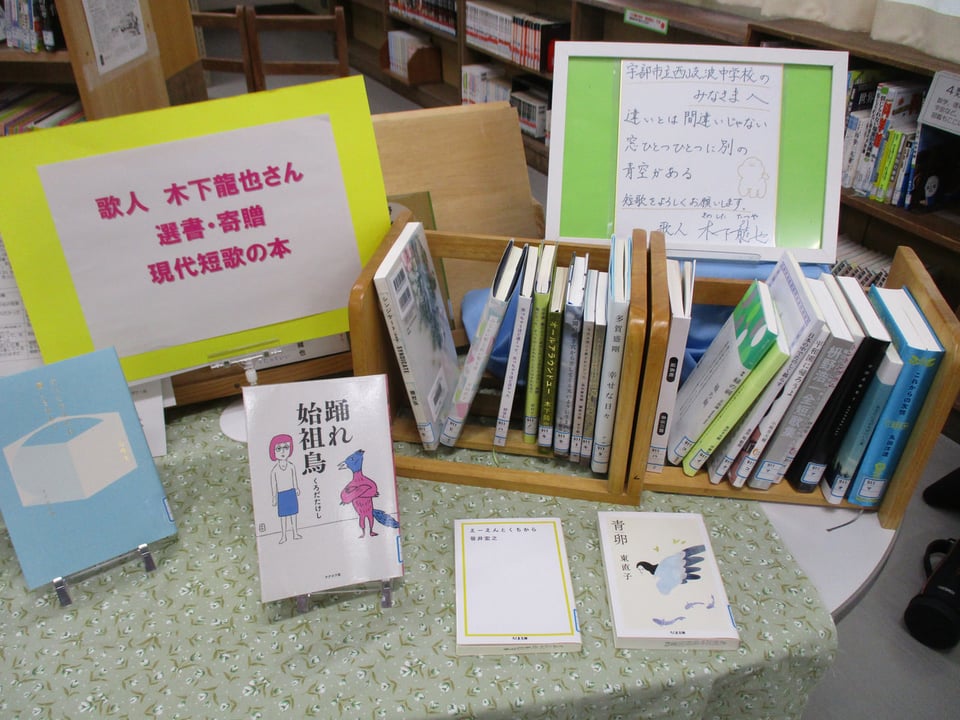 図書委員会では、寄贈された現代短歌の本を読み、「MY推し短歌」についての掲示物を作成することになりました。