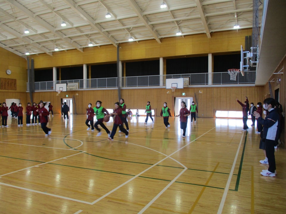 男子はグラウンドでソフトボール、女子は体育館でバスケットボールを楽しみ、盛り上がりました。