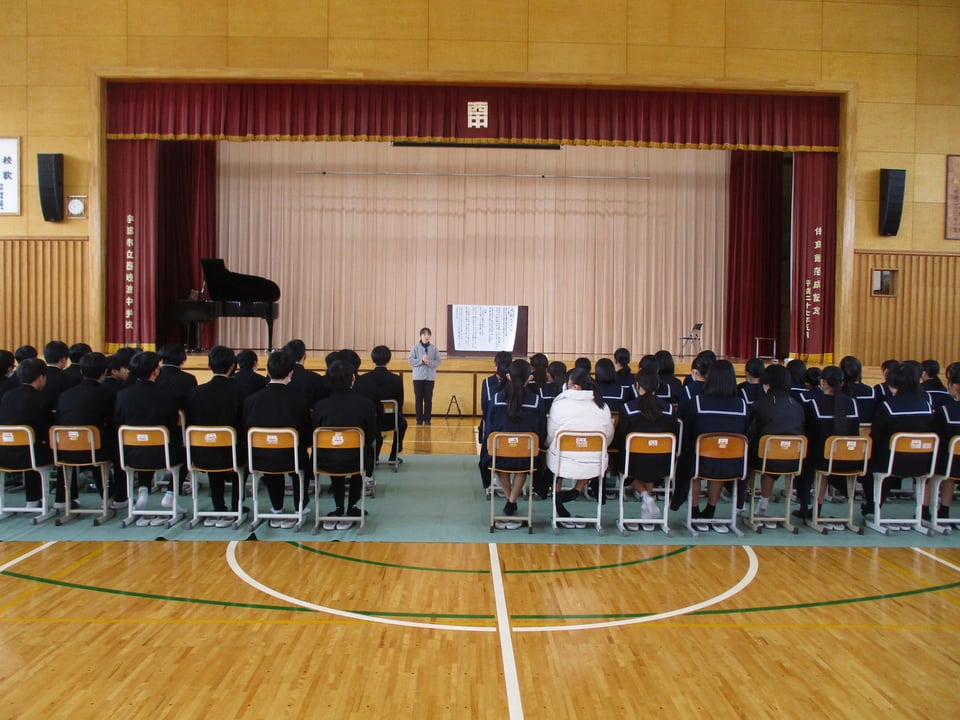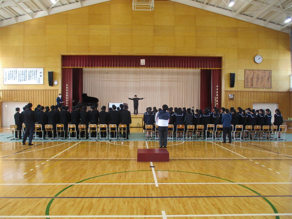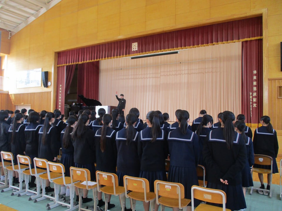 2月27日(金)の立志式に向けて、体育館で合唱練習をしました。