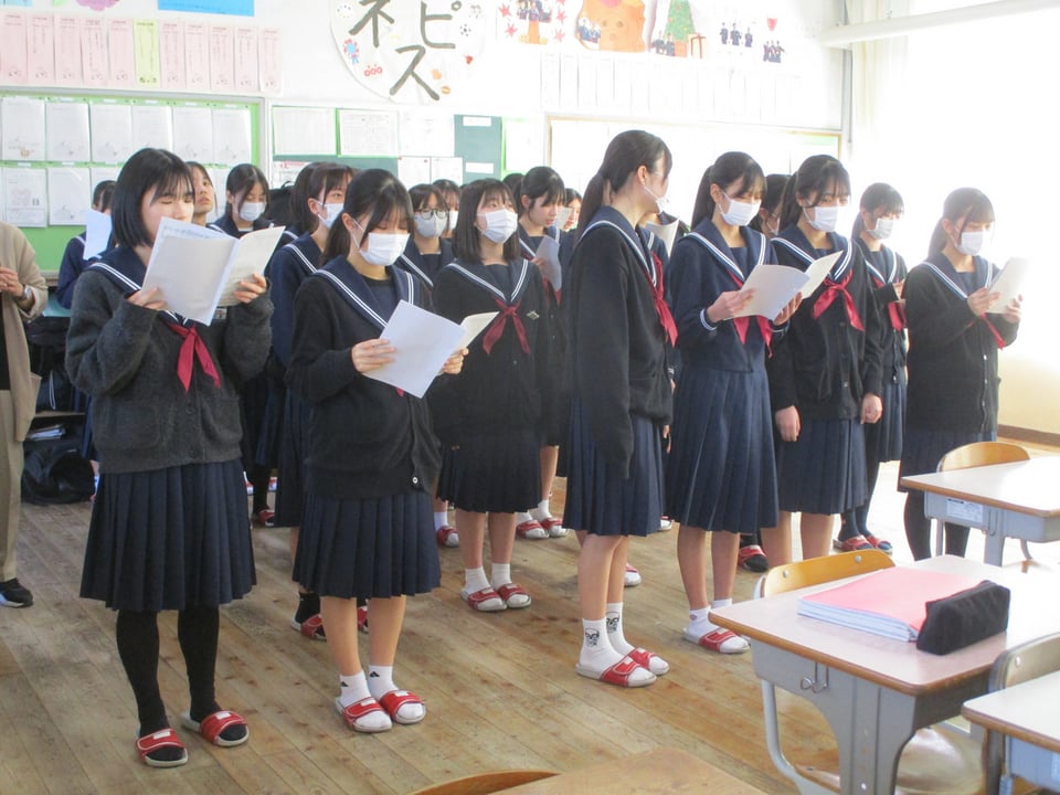 本日6時間目、前半は各パートに分かれて、後半は全体で卒業式の合唱練習をしました。