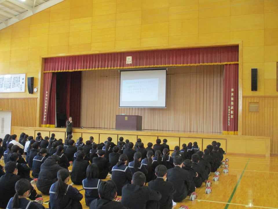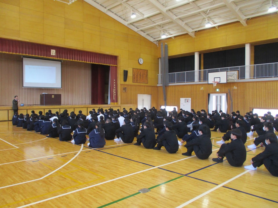 年度初めの学年目標「見えないものを大切にする学年」を振り返り、卒業式に向けての想いを高めました。