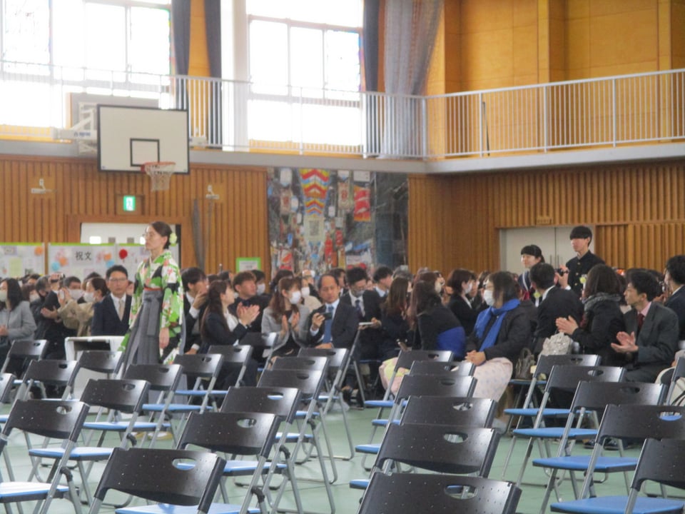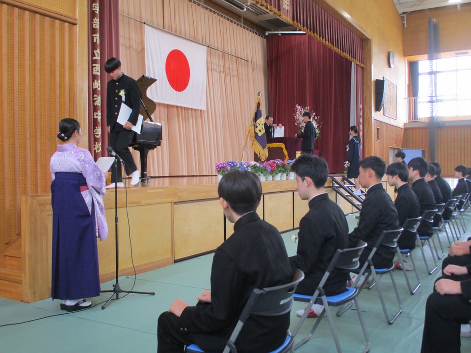 厳粛な雰囲気の中で式が挙行され、スピーチや合唱で式を盛り上げました。