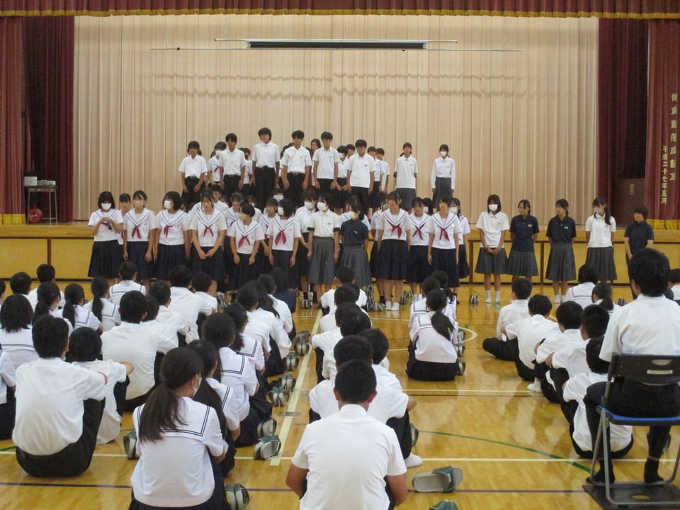 本日、テスト後の4時間目に全校集会が行われました。