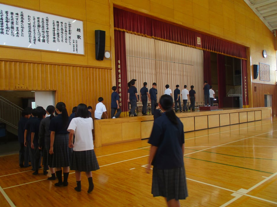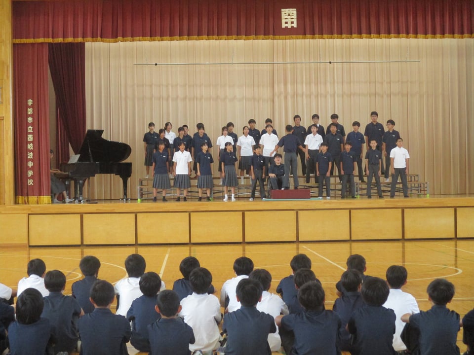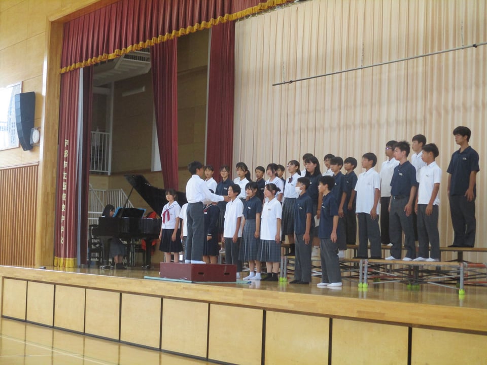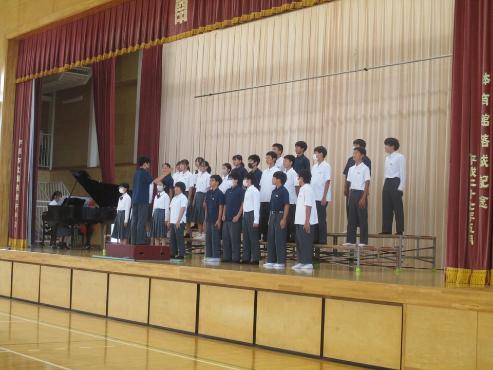 本日体育館で、学年別に校内合唱コンクールのリハーサルが行われました。