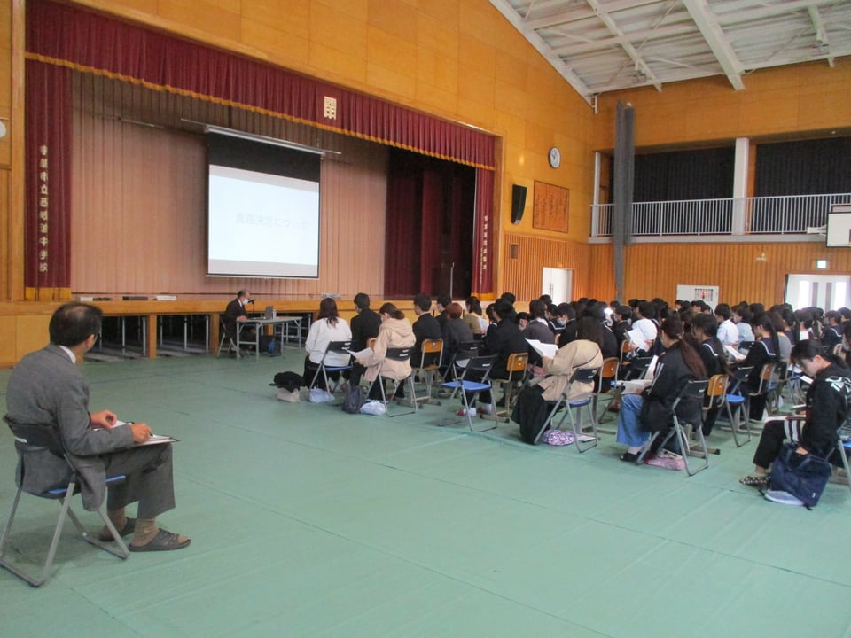 本日午前中、本校体育館で3年生とその保護者を対象に進路説明会が開催されました。
