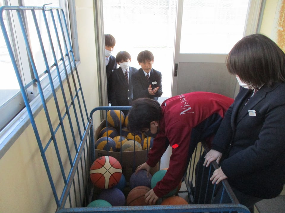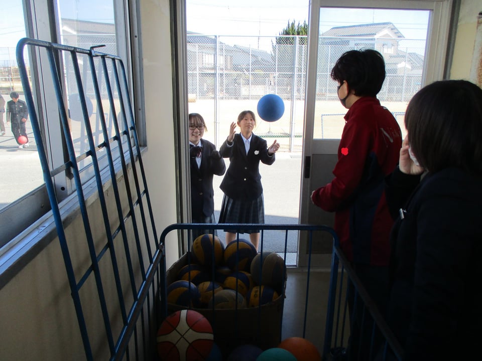 1月最後の昼休みも、ボールの貸し出しは大人気です。厳しい寒さの中、生徒たちは元気にサッカーやバスケをして楽しんでいます。