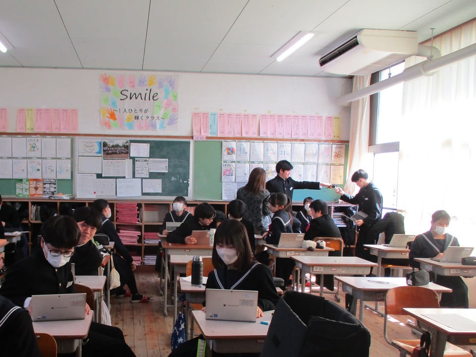 中学校で最後のタブレットアンケートに回答した後、3年間使用したタブレットに残っているデータを削除し、次の新入生に引き継ぐ作業をしました。