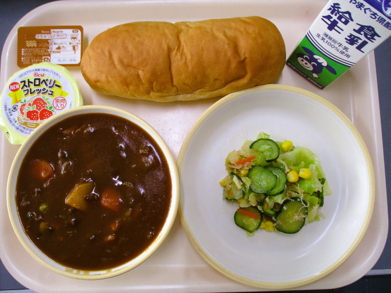 本日のメニューは、パン、はちみつ&マーガリン、ビーフシチュー、野菜とささみのサラダ、ストロベリーフレッシュゼリーでした。