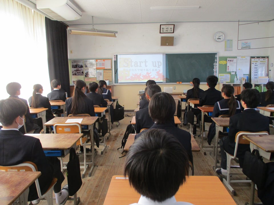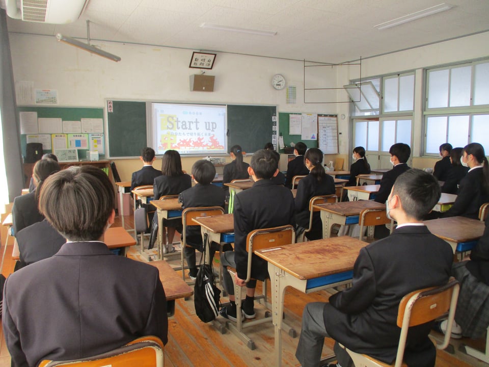 本日、5校時終了後、全校集会が行われました。今回は感染症予防のため、各教室でスライドを見ながら、生徒会執行部による放送を聴きました。