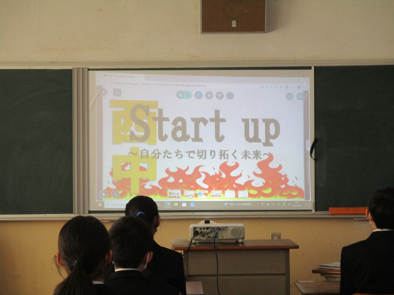 新生徒会のチャレンジ目標とその内容を発表し、他の生徒たちは教室で静かにプレゼンを聴いて、その想いを共有しました。