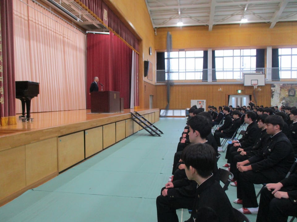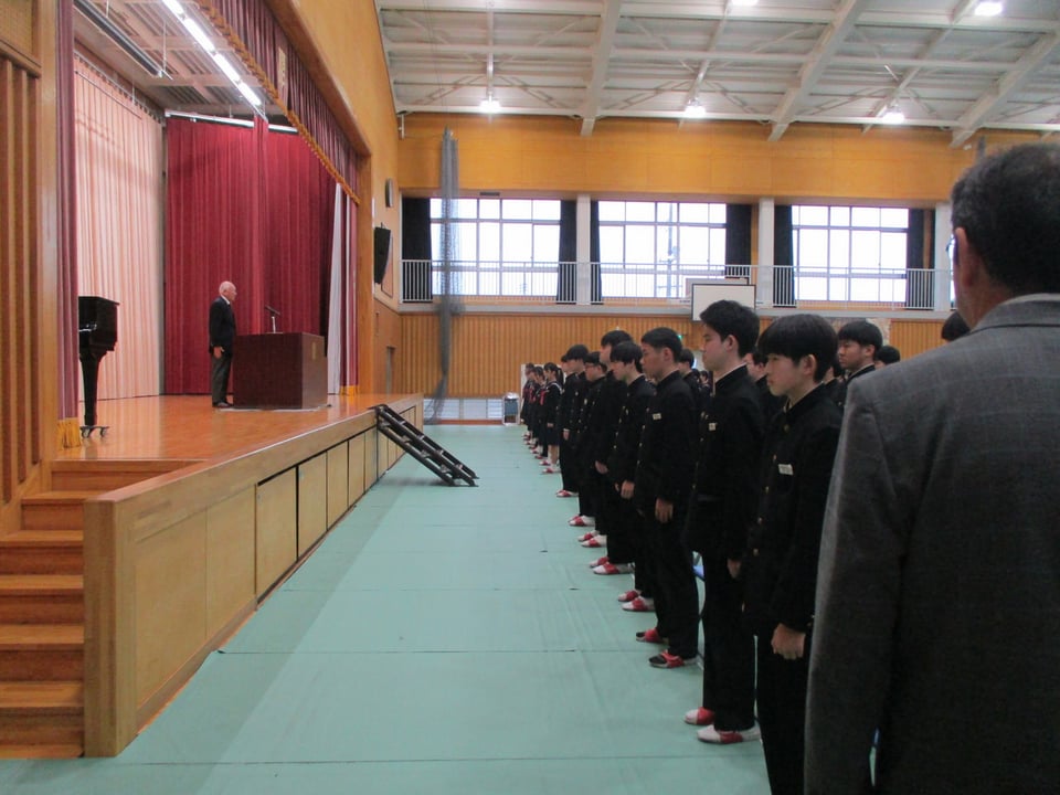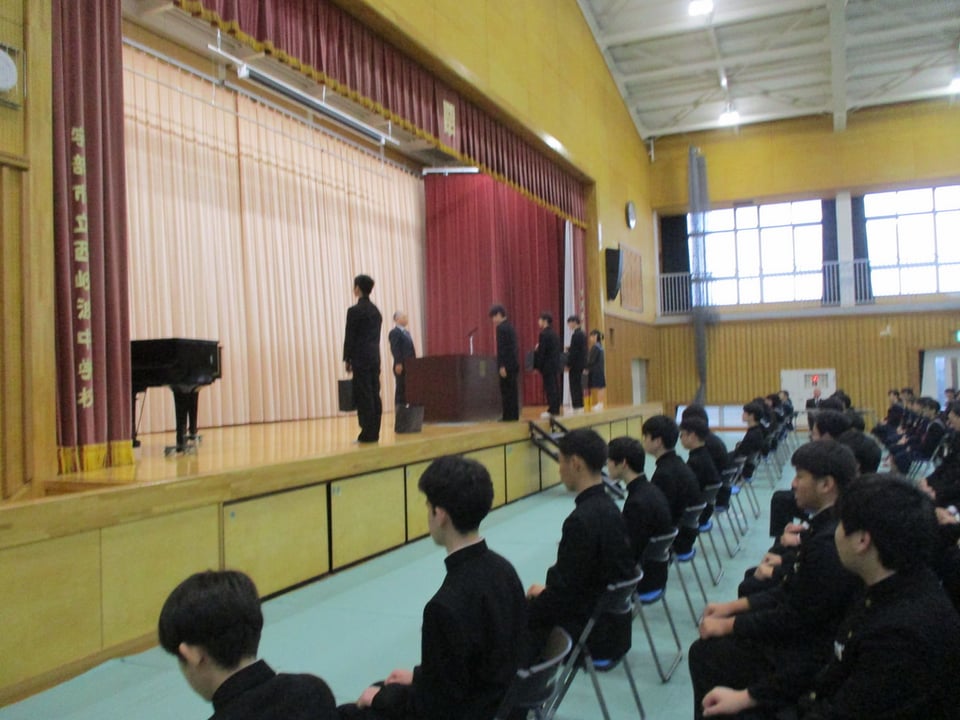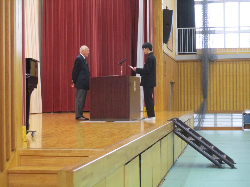 同窓会入会式では、同窓会長様にお越しいただき、当時の中学校の様子や西岐波中学校同窓生としての絆についてお話しいただきました。