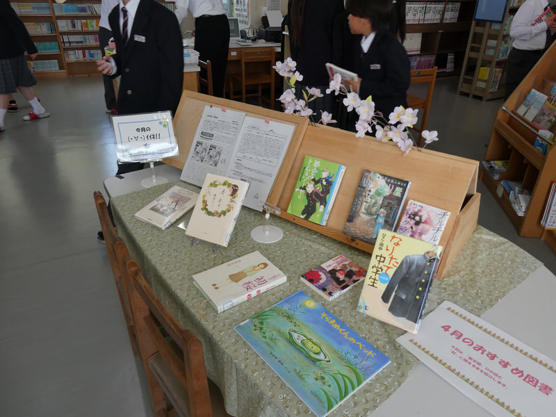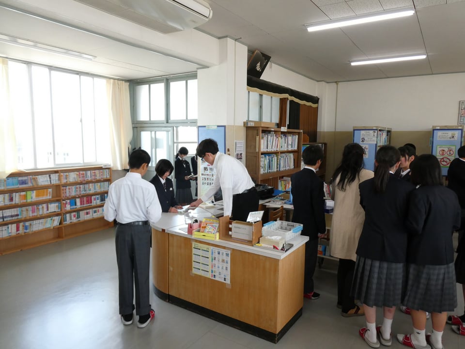 本校の図書室は学年ごとに利用できる日と全校生徒が利用できる日があります。主に昼休みに利用できるのですが、今日は1年生の日で昼休みの開始からとてもにぎわっていました。図書委員が貸し出しや返却の受付をしており、委員の生徒も大忙しの昼休み。ぜひ、たくさんの本にふれてほしいと思います。
