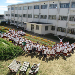 運動会練習終了後、各学年・各学級で集合写真を撮りました。1年生は、先日花壇コンクールの本審査があった中庭花壇の前で撮影し…