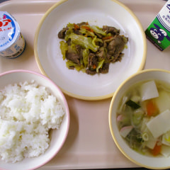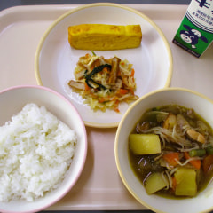 本日のメニューは、ごはん、じゃがいものうま煮、県産厚焼きたまご、せん切り大根の炒め煮でした。