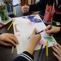本日放課後、卒業式の日の黒板アートや学級掲示の飾りつけに向けて、先生方の助言をいただきながら、デザインの再検討を行いまし…