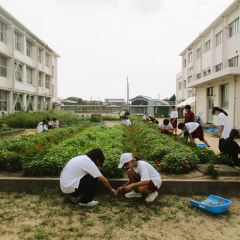 今朝の花壇整備の様子です。全校生徒が当番制で、花壇の水やりや草抜き、花摘みなどをしています。暑さに負けず、元気に花を咲か…