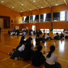 学年ごとに、今学期最後の集会がありました。1年生は、クラスごとに輪になって、2学期は「どんなクラスにしたいか」話し合い、…