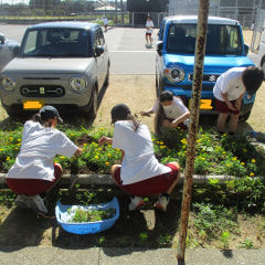 本日から本格的な夏休みに入り、中庭花壇の水やりや草抜きを当番制で行っています。朝、8時半から30分程度の作業です。なんと…