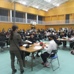 本日の午後、体育館で2年生理科の公開授業がありました。参観者は西岐波小学校、常盤小学校、西岐波中学校の全教員です。本時の…