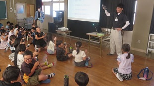 9月18日(水)「みず育」の出前授業がありました。宇部市水道局の方に講師として来ていただき、水に関するクイズをしたり、水のにおいが消える実験や水がきれいになる実験をしたりしました。子どもたちは水の大切さや安全で安くておいしい水道水ができる過程を改めて学習しました。